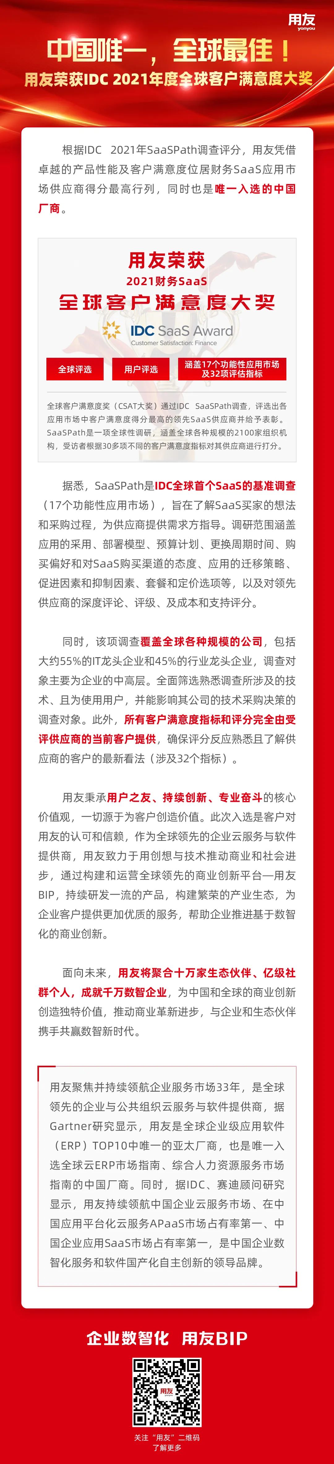 用友榮獲IDC 2021全球客戶滿意度大獎